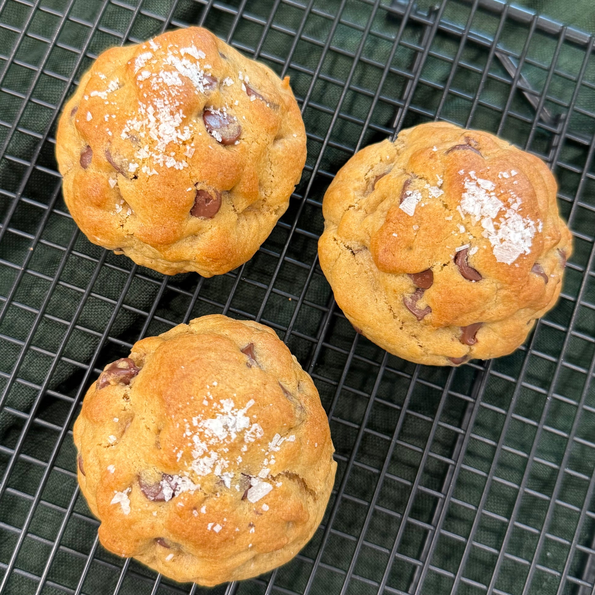 Nuestra nueva galleta esta repleta de chispas de chocolate y flaky salt en el tope. Es esa experiencia entre lo dulce y salado que no te puedes perder.
